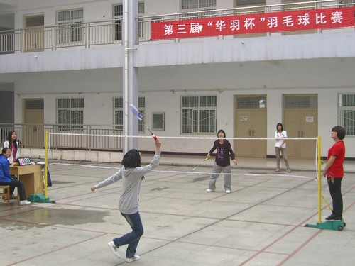 5月8日至5月9日,由院团委、社团联合会及理工系主办,“轻羽飞扬”羽毛球协会承办的第三届“华羽杯”羽毛球比赛在二号教学楼空地举行。