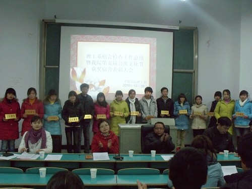 会议上,胡秀云老师首先宣读了获奖宿舍及先进班集体名单并发表讲话。钟教授为先进班集体的班级代表颁发锦旗,胡老师、张老师、管老师分别为获得文明宿舍一、二、三等奖的宿舍代表颁奖。最后,钟教授还做出重要讲话,对在本次公寓文化节获奖的宿舍和班级表示最衷心的祝贺,并强调宿舍安全的重要性。