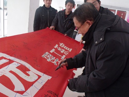 理工系系主任钟迪生教授,党总支副书记、系行政秘书胡秀云老师,系秘书、团总支书记杨晓杰等10余名老师参加了本次活动。活动吸引了众多学生的参与,大家都认真地在条幅上写下自己的名字,并认为这次签名活动十分有意义,起到了约束自己的作用。最后钟教授要求全系学生要系统复习、认真备考,做到诚信考试、远离作弊。