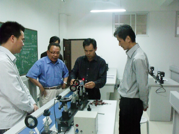 随后祝书记来到物理、电子等实验室进行了考察指导,系主任钟迪生、副主任管文水现场演示了多个物理实验,并把这些实验现象折射出物理原理做了介绍。祝书记表示,自然科学在人类发展过程中发挥了极其重要的作用,实验室的建成很好的让学生理论与实践相结合,为实践教学提供了必备条件,同时极大的激发了学生学习探索的热情,提高了学生的实践动手能力,为将来就业打下良好的基础。