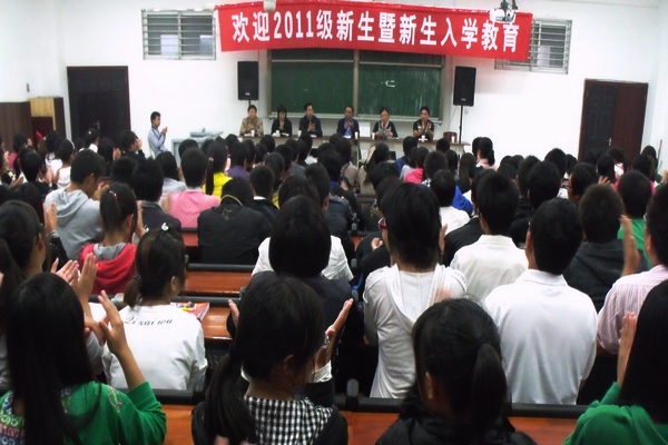 9月28日下午,理工系在图书馆101教室召开了2011级新生入学教育暨迎新篮球赛颁奖大会。系主任钟迪生、副主任管文水,系党总支副书记、行政秘书胡秀云、学工秘书杨晓杰,专兼职辅导员和2011级全体新生参加了会议。会议由胡秀云主持。