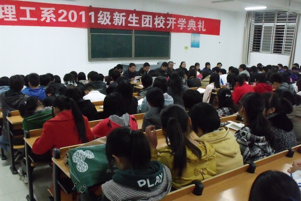 10月25日晚,我系2011级新生团校开学典礼在教三113教室召开。系主任钟迪生,行政秘书兼党总支副书记胡秀云,学工秘书兼团总支书记杨晓杰,全体辅导员和2011级全体新生参加了开课典礼,杨晓杰做主持。