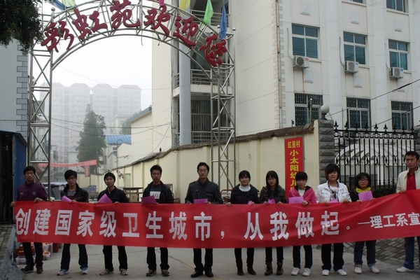 在老师的带领下,我系党校学员首先对校园一号和三号寝楼及周边,进行了彻底的大扫除,并逐一清理了卫生死角; 随后,深入到信阳市各大街道、社区,以发放传单和讲演的形式开展了“创建国家级卫生城市,从我做起”的宣传活动,广大市民对于学员们的热情宣传给予赞扬,纷纷表示要积极行动起来,为我市创建国家级卫生城市作出贡献。