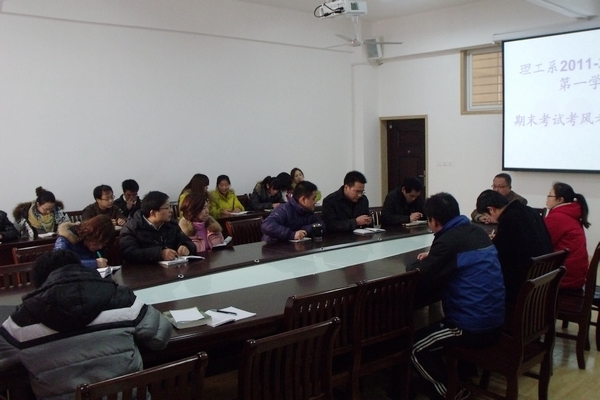 12月26日下午,理工系在教三楼会议室了召开期末考试工作会议。系主任钟迪生,副主任管文水,秘书胡秀云、刘宏勋、杨晓杰、全体辅导员、各教研室主任及各班学生干部参加了会议,会议由刘宏勋主持。