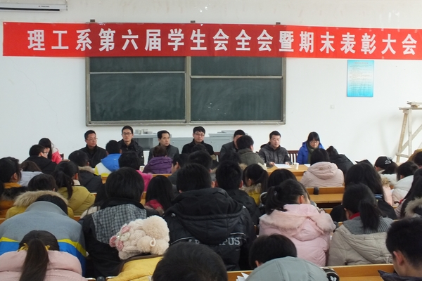 2013年1月4日中午,理工系第六届学生会全会暨期末表彰大会在教三113召开。系副主任管文水、系党总支副书记兼学工秘书陈俊、系行政秘书杨晓杰,系教学干事高永平、团总支书记耿家先及辅导员梁书荣、李伟和全体学生会成员参加了本次会议。