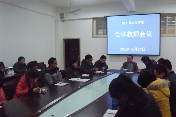 2月27日下午,理工系2013年度全体教师会议在教三楼会议室召开,系主任钟迪生、副主任管文水及全体教师参加了会议。