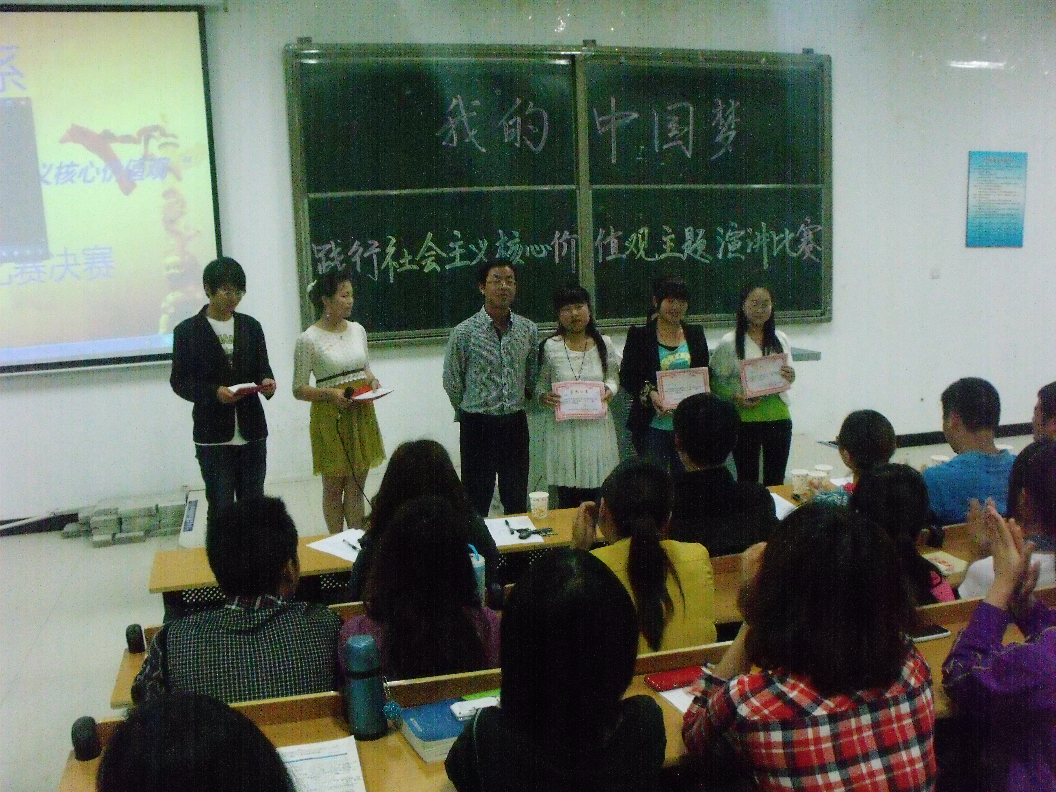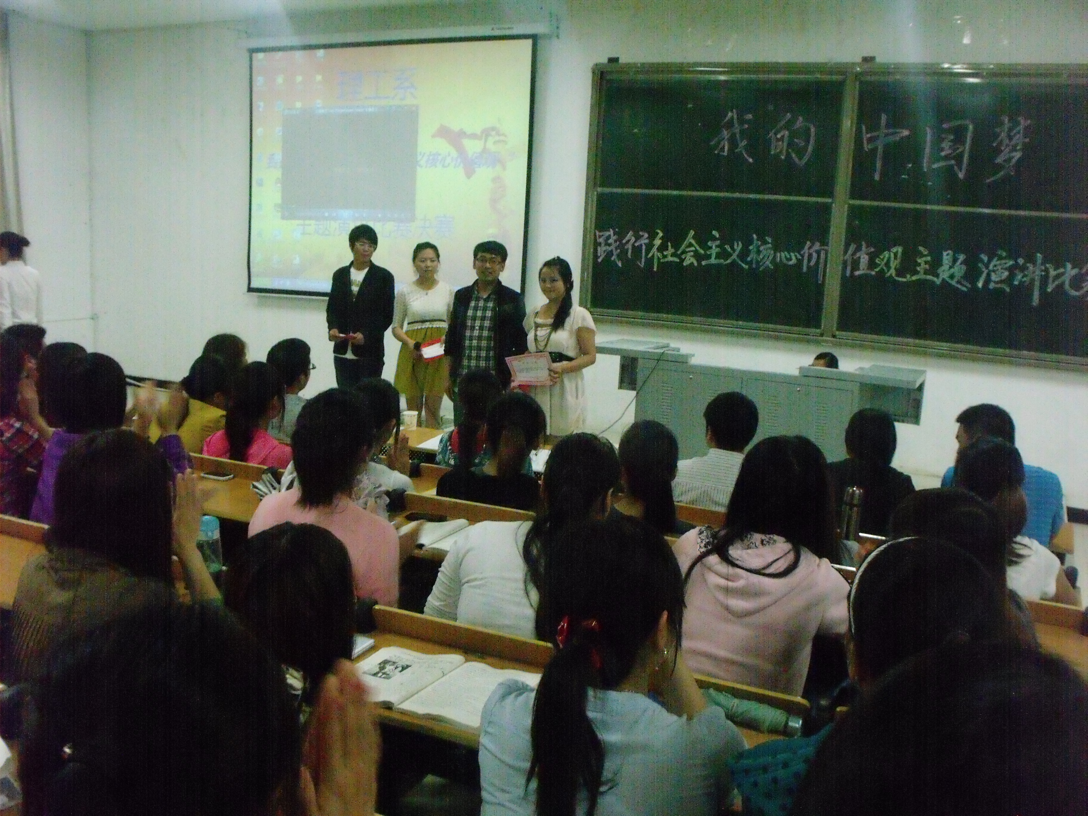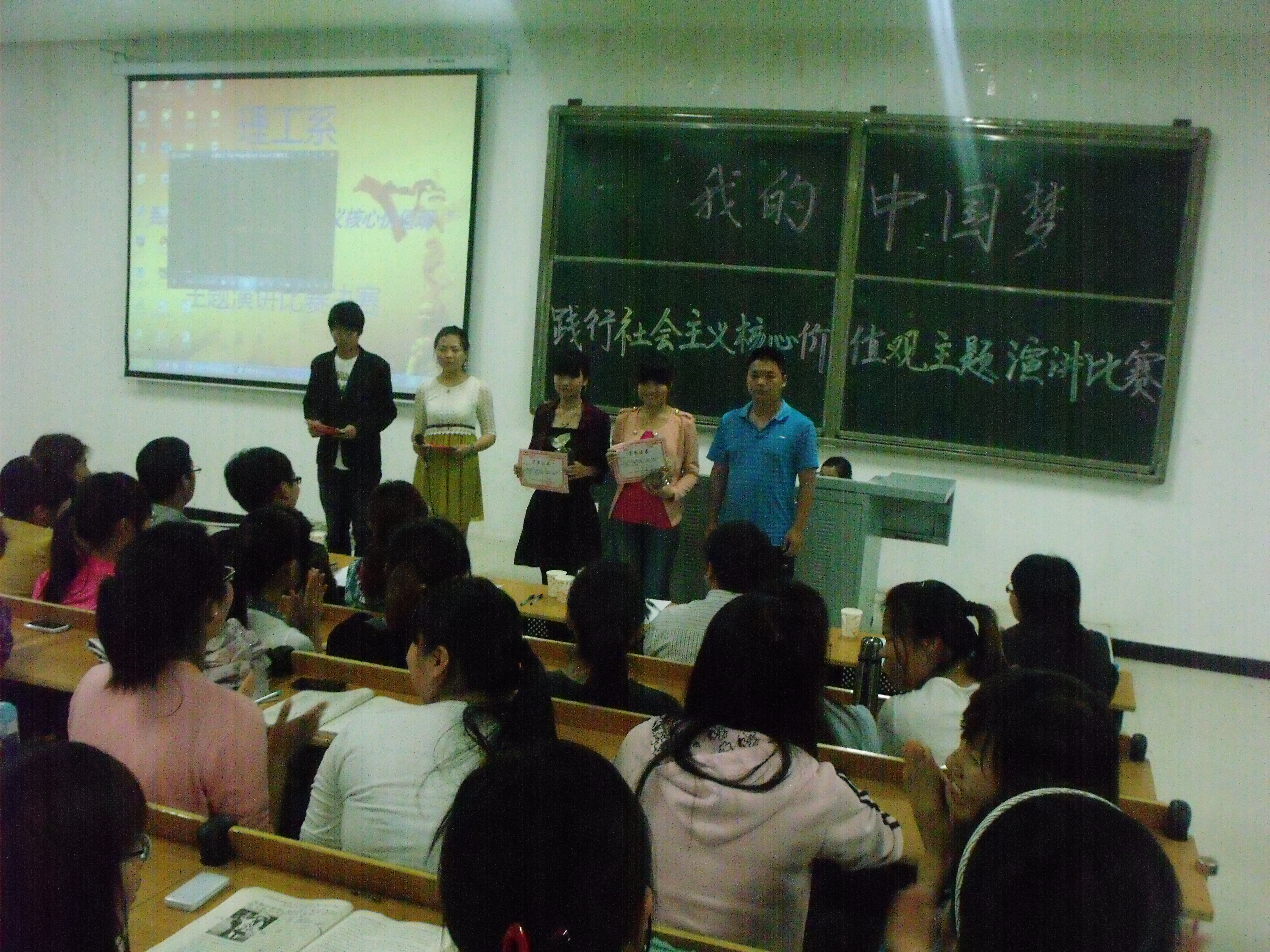 5月7日,由理工系党总支主办的“我的中国梦”之践行社会主义核心价值观主题演讲比赛在教三113举行。六名选手站在决赛的舞台上演绎激情,讲述他们的梦想。