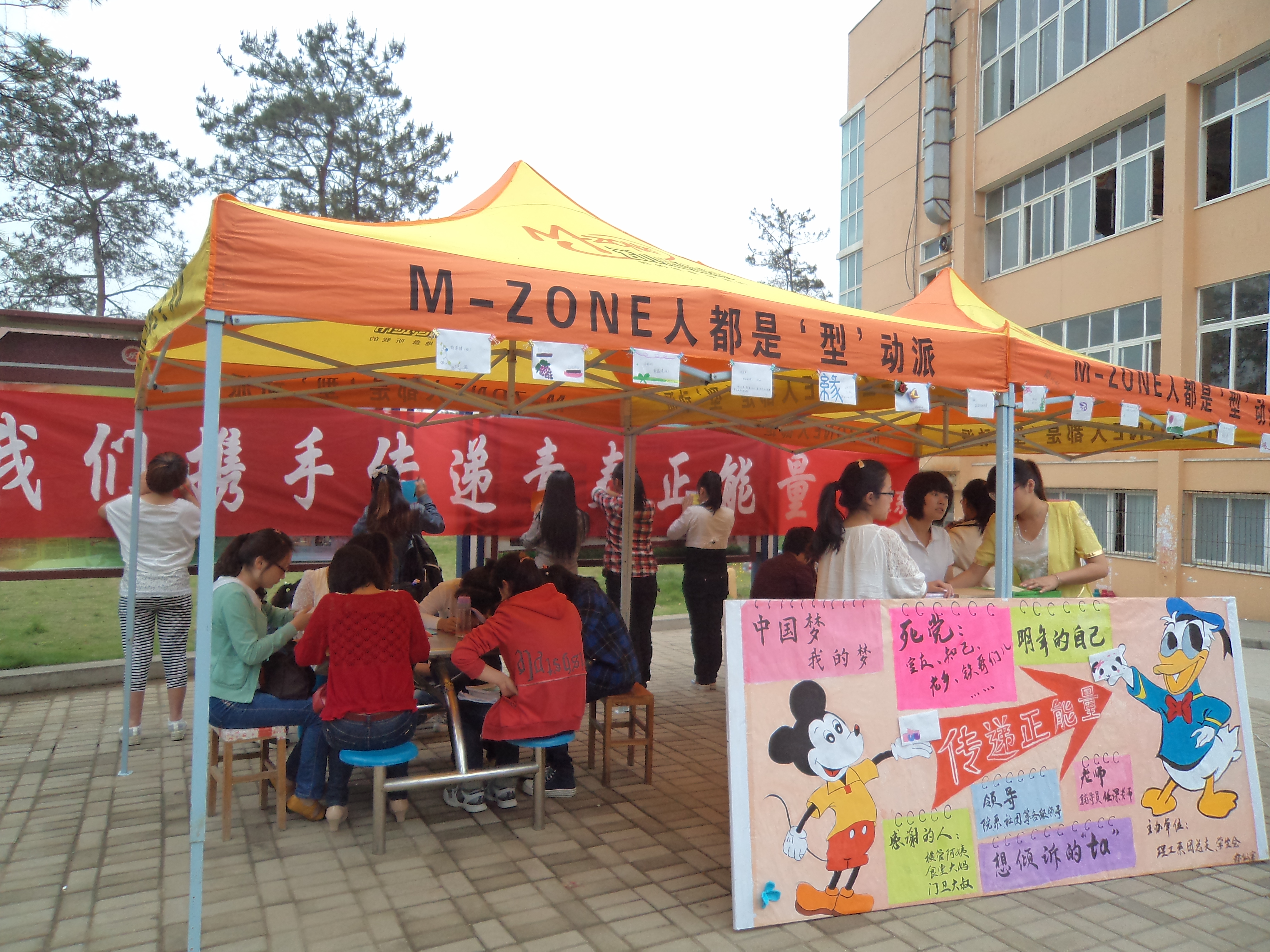 5月9日,由理工系团总支学生会办公室主办的“中国梦·我的梦”之携手传递青春正能量主题活动在新餐门前举办。本次活动旨在增进同学们与身边人之间的交流,传递校园正能量。