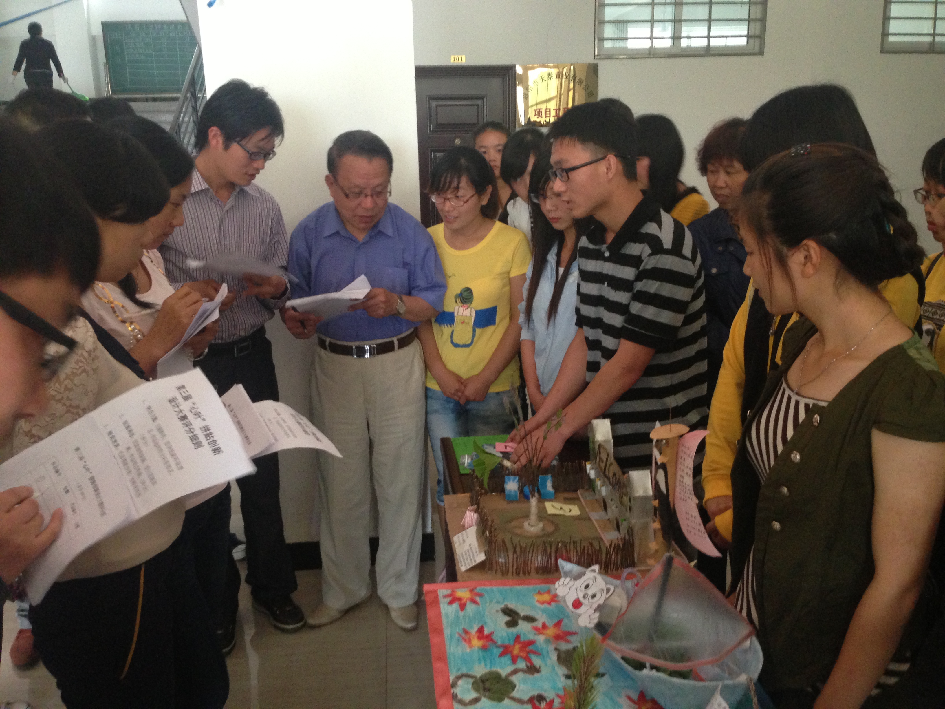 本次决赛有54份作品入选。决赛开始,首先由选手们依次为老师讲解自己作品的设计创意以及作品所代表的环保理念,然后评委老师打出相应的分数,并评出一、二、三等奖及优秀奖。最后,评委老师为获奖选手颁发证书及奖品并与获奖选手合影留念。