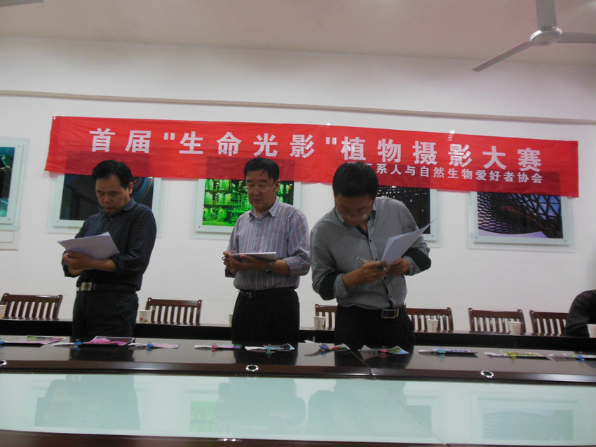 在评选现场各位领导老师认真观看选手的作品,分析各作品的优点及不足之处,为选手打出公平、公正的分数。随后理工系主任魏明坤教授对本协会举办的首届植物摄影大赛给予高度评价,并希望参赛选手能继续保持积极参加活动的激情,从活动中学到更多专业课以外的知识与技能,丰富课余生活,增强使用应用能力。经过老师们精心的筛选,共有15幅作品脱颖而出。