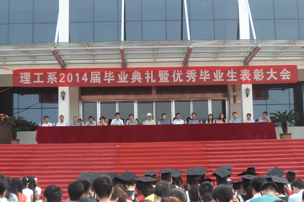 6月3日上午,理工系2014届毕业生毕业典礼暨优秀毕业生表彰大会在理工楼广场前隆重举行。副院长王志华,院长办公室主任张柏平,督导督察室主任、教学部副部长于祥杰,理工系主任魏明坤,副主任管文水和理工系全体师生参加了大会。大会由学工秘书陈俊主持。