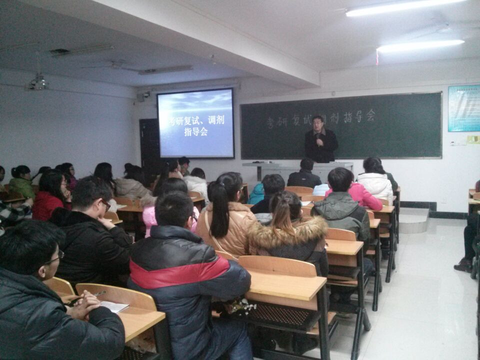 3月11日下午,理工系在理工楼509召开2011级考研学生复试、调剂工作指导会,主任魏明坤、教学秘书高永平、各专业骨干教师、毕业班辅导员以及全体2011级考研学生参加了会议。