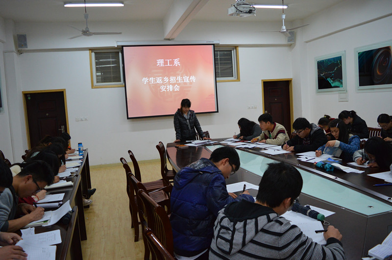4月1日下午,理工系在理工楼201会议室召开招生宣传培训会。系主任魏明坤、特聘教授明平顺以及系全体教师参加了会议。