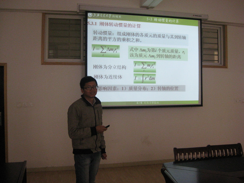 4月7号下午,物理教研室在理工系会议室成功开展教法竞赛试讲活动。冯金地老师作为2015年青年教师讲课比赛理工系初赛选手,利用本次活动进行了15分钟的试讲,为即将到来的理工系选拔赛做准备,物理教研室其他教师进行了观摩。本次试讲活动目标清晰,任务明确,是教研室老师提高教学水平,交流教学经验的良好平台。试讲之后教研室各位老师的点评,从ppt的版式,字体大小,颜色,内容的编排,到板书的规范性,语速,到与学生们的互动等等都给出了许多有意的建议和意见,对即将举行的系内初选很有帮助。本次试讲活动对物理教研室的教学水平起到了一定的促进作用,也推动了物理教研室教师之间的教学经验交流,有利于大家共同进步。