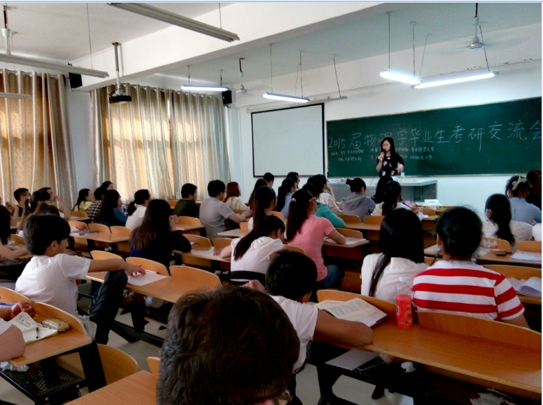 李亚茹学姐以自己的切身经历向同学们讲述了考研的宝贵经验。她认为,考研的成功等于正确的方法加之不懈的努力以及恰当的复习材料。她风趣的语言、清晰地条理、看门见山的风格,赢得了同学们阵阵热烈的掌声。