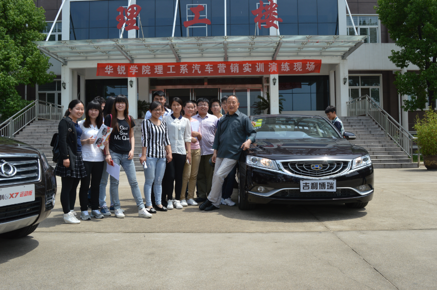 5月15日上午,理工系汽车服务工程专业汽车营销实训演练活动在理工楼前拉开帷幕,本次参展的汽车是由校企合作单位信阳豫通汽车销售有限公司提供的八种车型,主要有新帝豪,新远景,熊猫CROSS,博瑞、GX7等。