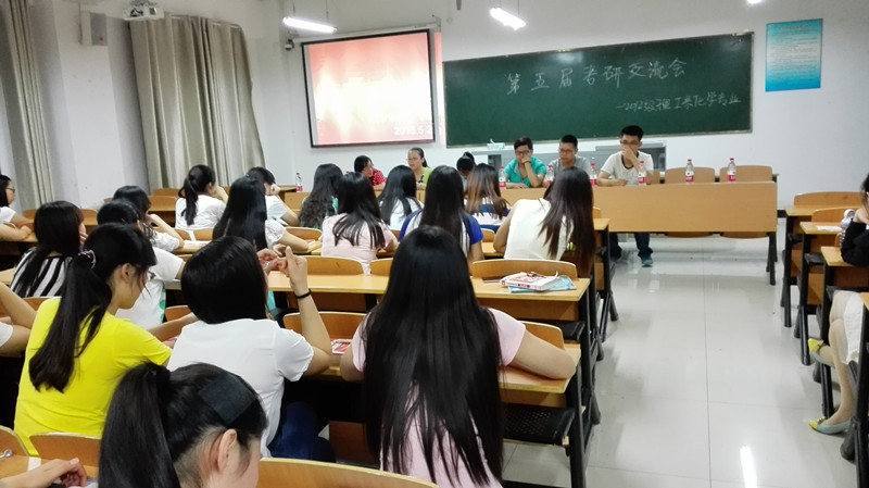 5月29日晚19:30——22:00理工系化学教研室在教三402举办了“第五届化学考研经验交流会”。2011级化学专业有49人上线,44人被录取,录取率为44.00%, “985”院校录取3人,“211”院校录取20人。其中六名考研优秀学生从怎么复习化学基础知识到复试的准备工作、调剂需要注意的事项等方面给学弟学妹做了考研分享。后半场学弟学妹们就自己感兴趣的问题(报考学校的选择、复习资料的挑选等方面)跟考研优秀学生进行了提问交流,交流会现场气氛热烈。我们会继续发扬化学专业高考研率的优良传统,认真做好12级化学本科班的考研辅导工作。