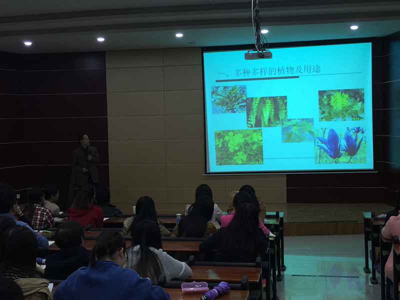 卢东升教授从生物多样性的研究与应用两个方面作了讲解。通过本次报告使学生了解到常用的植物多样性的应用现状,并且对植物多样性的研究现状有了深入的了解。同时也认识到作为生物专业的学生如何进行理论的学习及专业知识的研究。