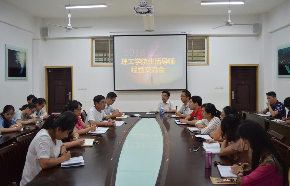 6月15日下午,理工学院2015-2016学年学生生活导师制经验交流暨总结大会在理工楼201会议室成功召开。理工学院院长魏明坤、学工秘书陈俊、行政秘书杨晓杰和教学秘书高永平等33名生活导师共同参加了本次大会。会议由陈俊主持。