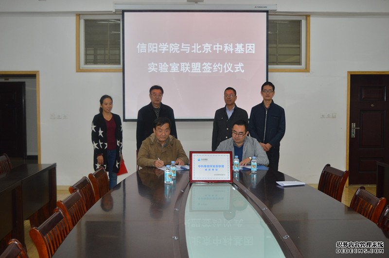 近日,信阳学院与北京中科基因技术有限公司签约实验室联盟。信阳学院毛海涛校长,北京中科技术有限公司技术总监党占国、理工学院魏明坤院长及生物教研室教师出席了签约仪式。