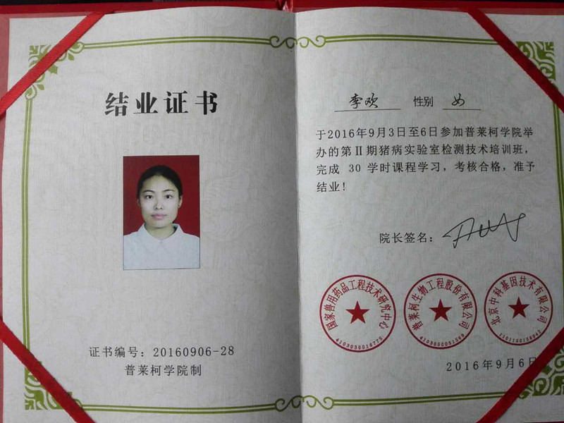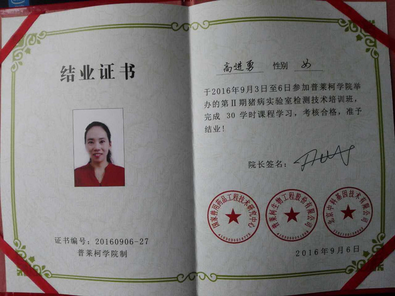 日前,我校理工学院生物教研室高进勇、李欢教师前往洛阳,参加由普莱柯生物工程股份有限公司联合北京中科基因技术有限公司、河北科技师范学院动物科技学院共同举办的“第二届猪病实验室检测技术培训班”,培训期4天。