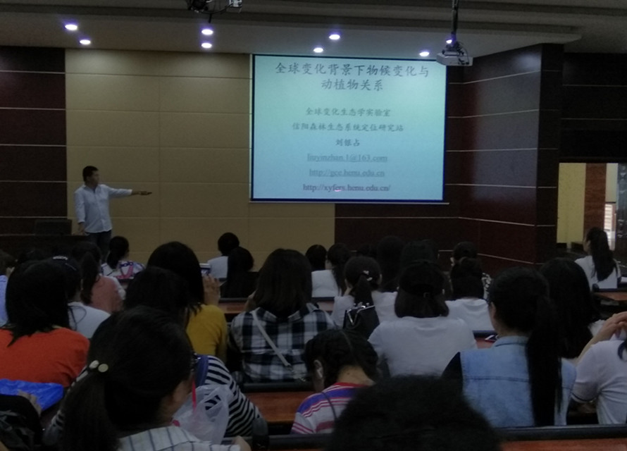 9月19日下午,理工学院邀请河南大学硕士生导师刘银占在图书馆101举办“全球变化背景下物候变化与动植物关系”学术报告。理工学院200余名师生聆听了报告,报告会由该学院生物教研室主任余炎炎主持。