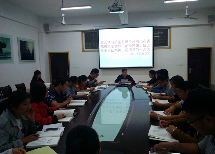 9月27日下午,理工学院党总支在201会议室召开专题学习习近平总书记7月26日在省部级主要领导干部专题研讨班上的重要讲话精神会议。全体教工党员参加了会议,会议由该学院党总支副书记张红梅主持。