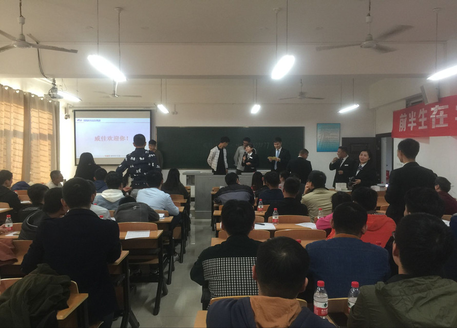 王俊上总经理从集团简介、发展历程、企业文化、市场网络、企业荣誉、校招概况等方面,详细介绍了威佳集团的企业发展目标和人才战略,同时表达了对我校毕业生入职威佳集团的热切期望。