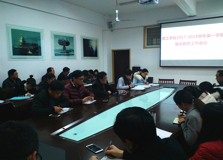 11月29日下午,理工学院在理工楼201会议室召开2017-2018学年第一学期期末教学工作会议。理工学院院长魏明坤教授、党总支副书记张红梅老师、管文水副教授、杜来林副教授以及全院教师参加了会议。会议由理工学院院长魏明坤主持。