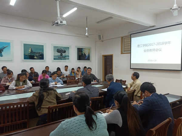 4月10日下午,理工学院在理工楼201会议室召开全体教师会议,学院院长魏明坤教授、姚素梅教授、肖生发教授、夏成宝教授、杜来林教授、教学干事赵丹及全体教师参加了本次会议,会议由理工学院院长魏明坤主持。