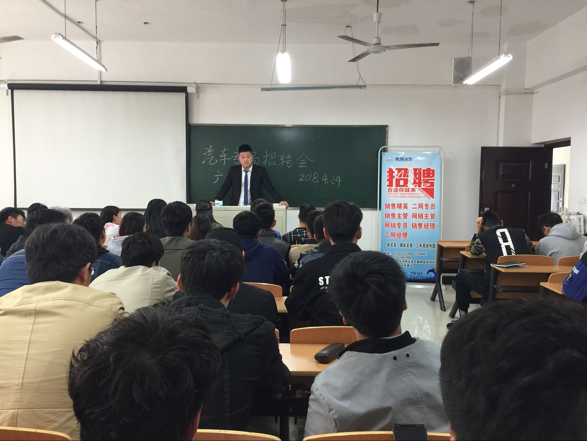 为了进一步做好大学生就业服务工作,理工学院近期针对不同专业开展系列招聘专场会。2018年4月24日下午15点,在理工楼301教室举行了2018年第二次精准就业招聘会------信阳市广源猎豹汽车专场招聘会。