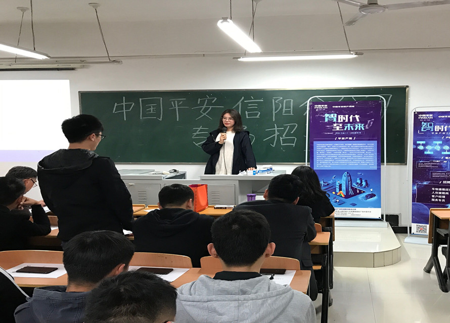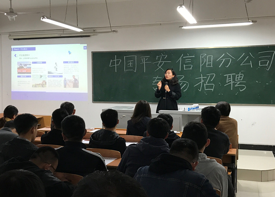 为切实做好我院毕业生就业工作,大力推进校企合作,积极为用人单位输送应用型人才。11月5日下午,理工学院邀请中国平安财产保险股份有限公司信阳中心支公司在理工楼605教室进行专场招聘宣讲会。公司综合管理部经理王芳、人事行政部主任王霞,理工学院汽车专业教授肖生发、杜来林,教师代表任倩、冯端端,以及15级汽车服务工程本科毕业班学生共计70余人参加了招聘会。