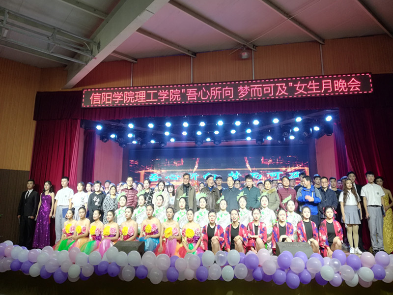 11月29日晚上七点,倍受期待的信阳学院理工学院“吾心所向,梦而可及”女生月文艺晚会在大学生活动中心如期举行。理工学院院长魏明坤、理工学院党总支副书记张红梅、信阳学院特聘教授肖生发、杜来林,信阳学院图书馆乔秀玲老师以及理工学院师生300余人共同观赏了晚会。