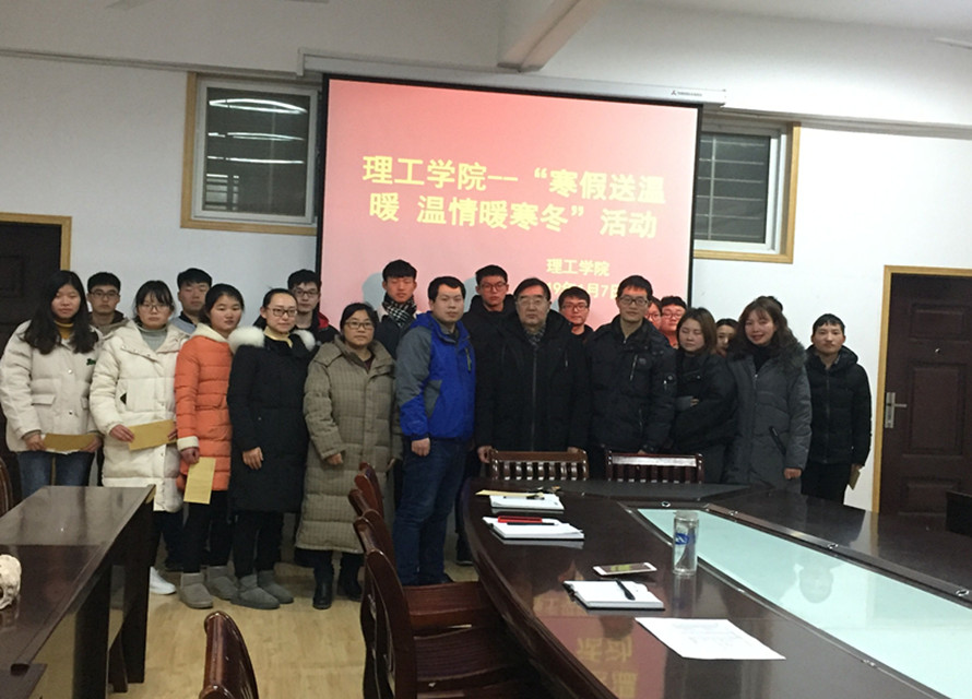 1月7日下午理工学院在理工楼201会议室举行“寒假送温暖 温情暖寒冬”活动。理工学院院长魏明坤教授、学工秘书杨晓杰老师、全体辅导员及受助的学生代表参加了此次活动。