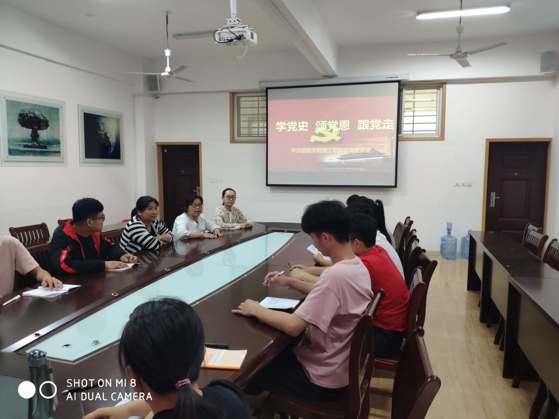 2019年5月21日下午4点,理工学院团总支书记梁书荣老师与本期14名入党积极分子一起开展了“学党史、颂党恩、跟党走”的学习交流会,交流会由团总支书记梁书荣老师主持。