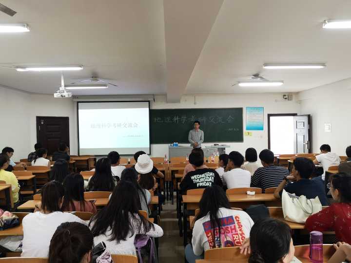 5月31日上午,理工学院地理教研室在理工楼312教室举办了“地理科学专业2019年考研经验交流会”,这也是地理科学专业举办的第七届考研经验交流会。参加会议的有地理教研室全体教师、考研优秀学生代表:连帅明,易成功,马路婷,代帅楠,李泽军,张贝贝以及2016级准备参加考研的同学们。