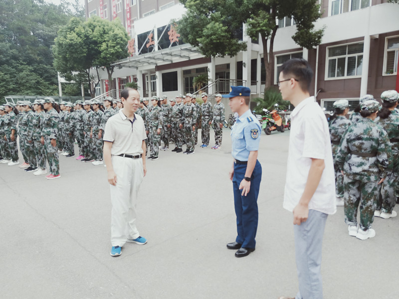 从一个个排列整齐的方阵前走过,通过同学们响亮有力的口号,肖生发充分肯定了同学们奋发向上、吃苦拼搏的精神,肯定了新生们过去几天的表现,勉励大家要继续努力,克服困难,挥洒汗水。并代表学院对承训教官们表示了感谢。