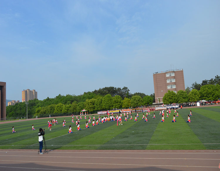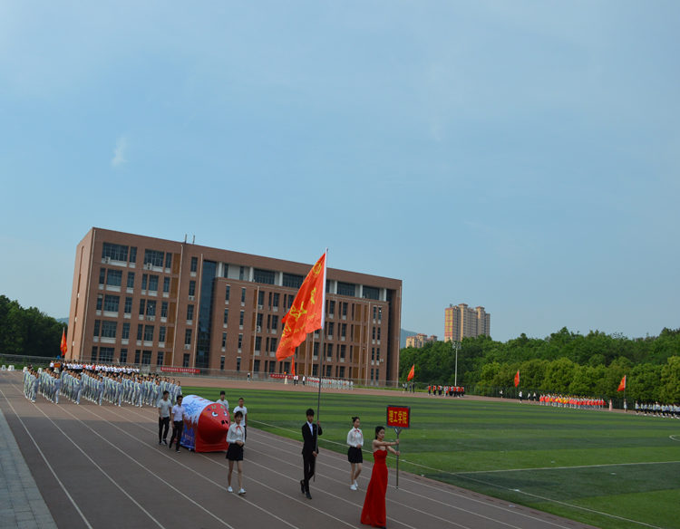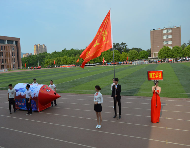 接着,开幕式上。伴随着激动人心的《运动员进行曲》,国旗队、校旗方队、会旗方队、裁判员方队、教职工方队和各学院代表队都分别身着统一服装、迈着整齐的步伐、喊着嘹亮的口号走过主席台,接受在场领导、嘉宾和广大师生的检阅。