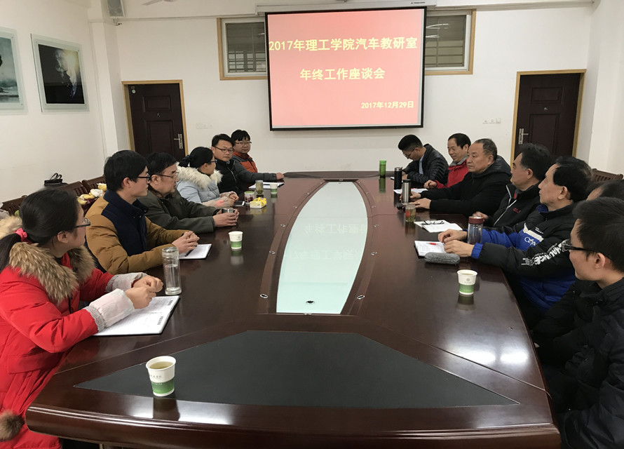 12月29日下午,理工学院汽车教研室在理工楼201会议室召开2017年终座谈会。理工学院院长魏明坤教授、汽车教研室明平顺教授、肖生发教授、畅静文教授、杜来林教授以及院行政和教研室所有教师齐聚一堂,共话精彩的2017,展望崭新的2018。