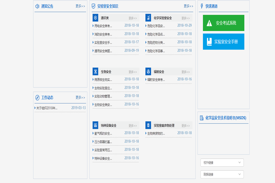 本学期理工学院引入了实验室安全考试系统,进入专业实验室的教师及学生均需在实验室安全考试系统作答相关的试题,考试合格后方可进入实验室工作。目前正在充实安全试题题库,做最后准备工作。