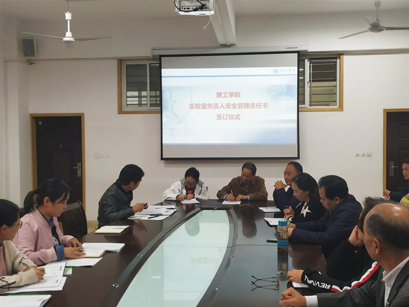 10月16日下午,理工学院在理工楼201会议室举办实验室负责人安全管理责任书签订仪式。理工学院院长肖生发、党总支副书记张红梅、行政干事樊瑞、教学干事赵丹、学工秘书杨晓杰以及全体教师参加了本次仪式。