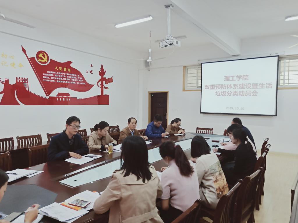 会上,樊瑞传达了学校召开安全双重预防体系建设会议的精神,宣读了《信阳学院安全风险辨识管控与隐患排查治理双重预防体系建设实施方案》及《关于成立理工学院安全风险辨识管控与隐患排查双重预防体系建设工作领导小组的通知》。杨晓杰宣读了《信阳学院校园生活垃圾分类工作实施方案》及《理工学院关于校园生活垃圾分类的工作方案》。