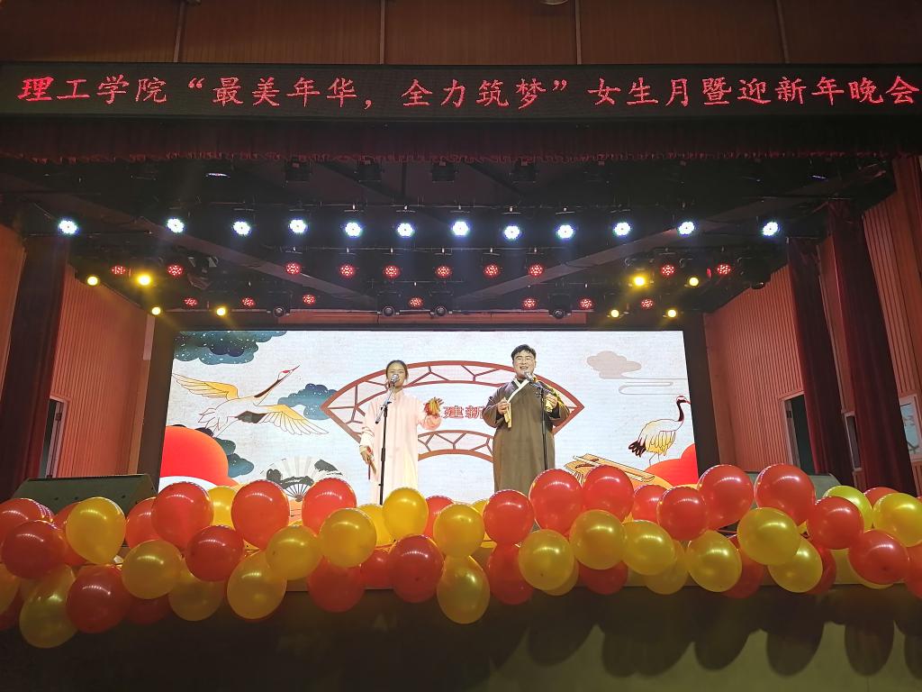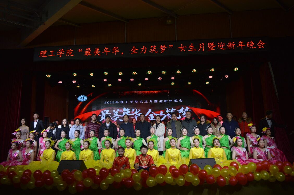 12月1日晚上七点,理工学院举办的2019年女生月暨迎新年晚会在大学生活动中心隆重举行。信阳学院督导室主任魏明坤,商学院党总支书记张富庄,教育学院党总支书记李赟,土木工程学院党总支书记潘卫国,外国语学院党总支书记李静,美术与设计学院党总支副书记袁军,校团委周扬,理工学院院长肖生发、党总支副书记张红梅以及全体教师和学生共同观看了晚会。