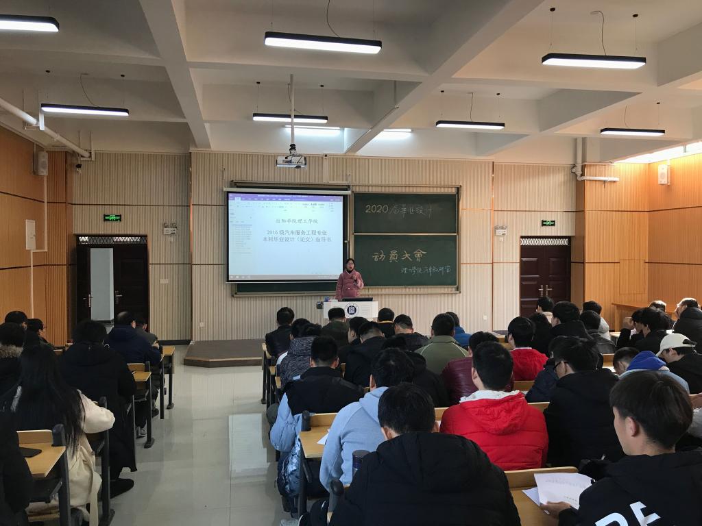 为贯彻我校第一次教学工作大会精神,做好迎评促建工作,进一步加强毕业设计(论文)教学环节的管理,切实提高2020届毕业生毕业设计(论文)质量,12月5日上午,汽车教研室在实训中心103为2020届汽车服务工程专业毕业生召开毕业设计(论文)动员大会,教研室全体教师和全体毕业生共计150余人参会,会议由任倩主持。