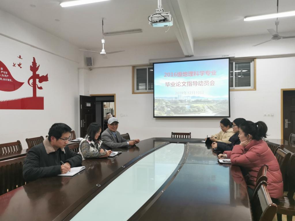 12月10日下午,地理教研室在理工楼201会议室召开2016级地理科学专业毕业论文指导动员会,地理教研室学科带头人马耀光教授、地理教研室主任魏新玲老师及教研室的青年教师们参加了会议,会议由魏新玲主持。