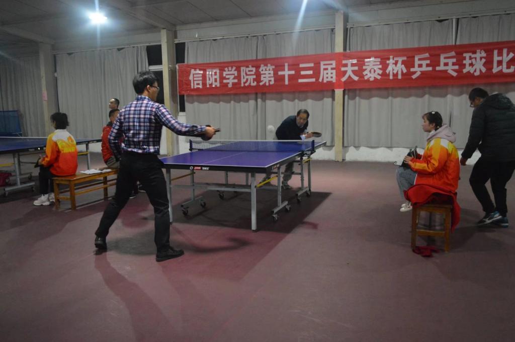 12月9日至12月13日信阳学院在乒乓球馆举办了第十三届“天泰杯”乒乓球赛。理工学院的教师及学生参加了本次比赛。