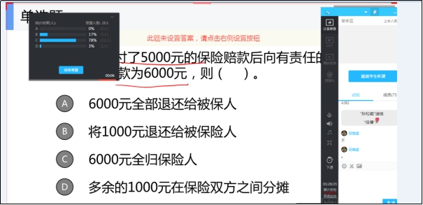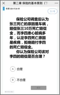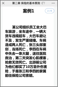 直播授课内容是近因原则、损失补偿原则及其派生原则。先学习近因原则,围绕案例展开:首先,针对预习案例(图2)组织讨论,将学生分正、反两组,经过各组沟通讨论,双方代表分别发言,阐述理由。这种方式不仅激发学习兴趣,也间接对学生预习效果进行检验,进一步发现问题,然后在授课环节予以解决。其次,教授近因原则的内容,特别是对案例讨论环节学生发言暴露出的理解错误或模糊不清的知识点(比如近因的概念及近因的判定方法)展开重点讲解:近因的判定分为四种情况,每种情况设置一个小案例,让学生有直观地认识,并着重讲述多因连续致损和多因间断致损两种情况下判定近因的技巧。最后,回顾案例,让学生重新分析案例,给出答案。损失补偿原则及其派生原则也按照这一思路。