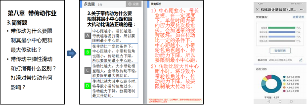 由于新冠疫情延迟开学,《机械设计基础》课程采用了混合式教学,即学生通过中国大学MOOC、学堂在线自主学习由河南科技大学主讲的“机械设计”; 教师通过雨课堂辅导直播、讨论交流、布置作业、在线测验等,并通过QQ提供教学资料(如自学课件、相关视频、辅导材料等)。根据专业特点和学情,本着“理解概念定义、掌握方法原理、无需推导证明、重在汽车应用”的原则,坚持奏好网络教学三部曲,引导学生自觉学习,积极思考!具体做法如下: