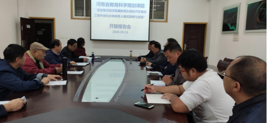 10月13日下午,汽车工程教研室肖生发教授主持申报的河南省教育科学“十三五”规划课题《适应地方经济发展的民办高校汽车服务工程专业校企协同育人模式探索与实践》开题报告会在理工楼201会议室召开。开题报告会的评议专家、课题组全部成员以及教研室相关教师参加了报告会。报告会由任倩主持。