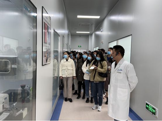 上午九时许,全体师生乘坐校车抵达泰宇健康产业园。在泰宇集团工作人员的引领下,通过参观走廊参观了三楼基因生物工程实验室,了解分子生物学在基因检测等方面的的实践应用,以及一些先进仪器的运行原理与使用方法,并认真听取了实验室研究员就新生儿耳聋基因项目等试验及基因测序平台的细致讲解。